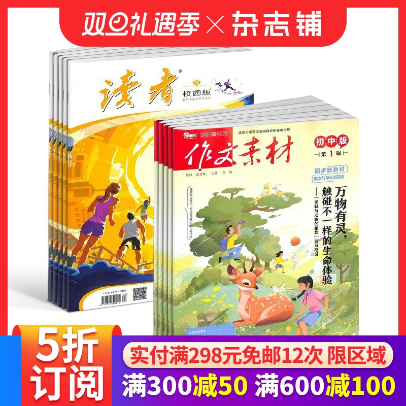 读者校园版+作文素材初中版杂志 2026年1月起订 1年共24期 杂志铺 青春励志心灵鸡汤青年文学文摘 初中生作文辅导书籍 全年订阅