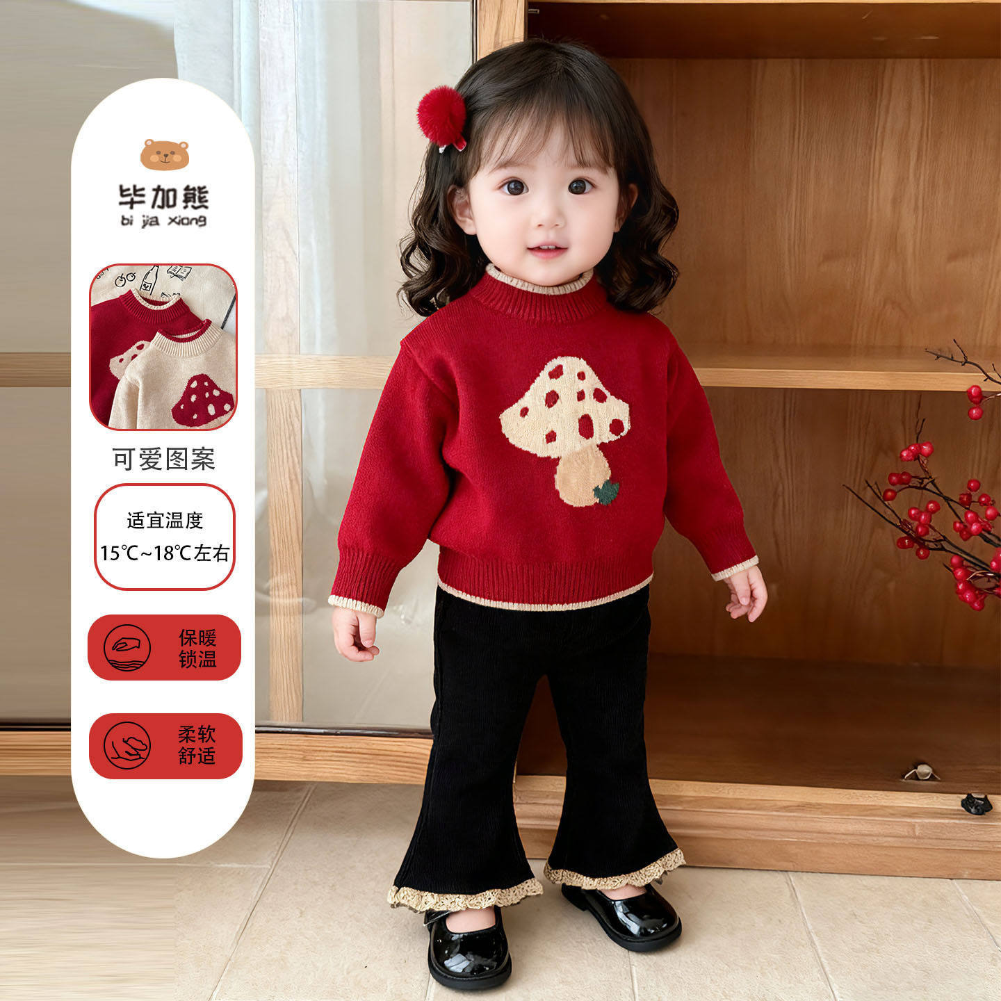 木本尚女童秋冬毛衣套装2026新款宝宝针织衫两件套甜美可爱拜年服