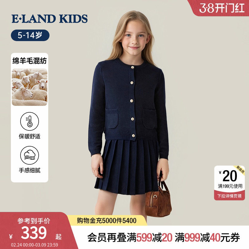【绵羊毛混纺】eland kids衣恋童装女童针织套装秋冬半身裙