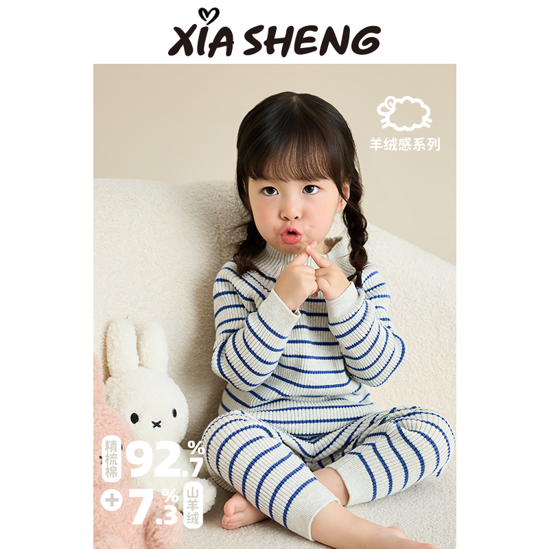 夏生羊绒感系列男女童条纹毛衣宝宝打底裤子儿童针织套装秋冬新款