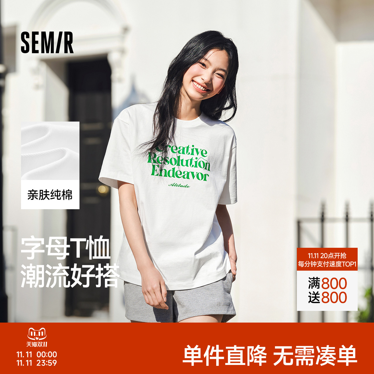 [商场同款]森马短袖T恤女纯棉宽松潮流2025新款夏季个性字母衣服