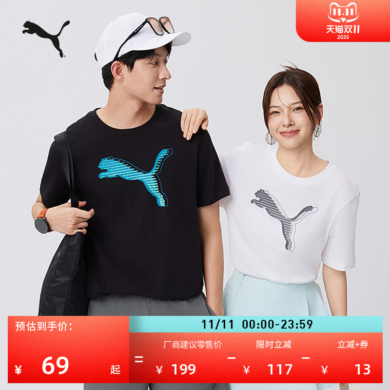 纯棉白色休闲短袖T恤男女情侣款PUMA彪马夏季印花运动上衣 691551