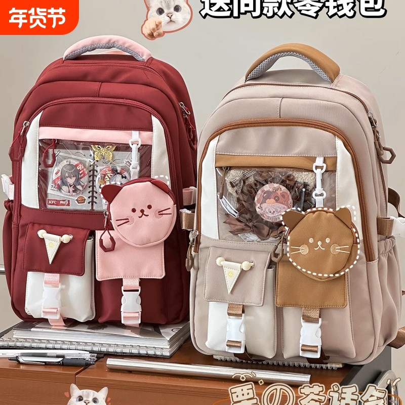 书包韩版初高中生高品质大容量轻便百搭痛包女可爱撞色学院风背包