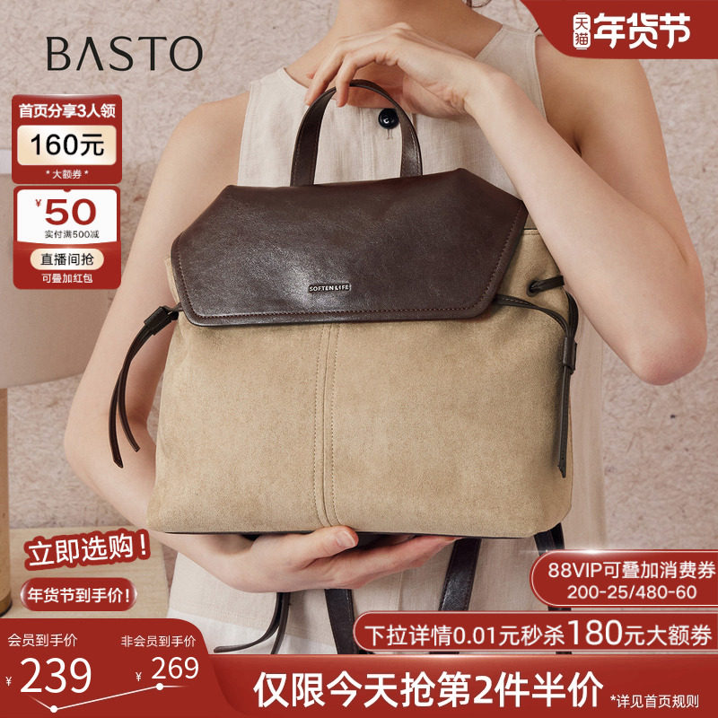 百思图2025冬季新款简约复古学院风背包潮流通勤双肩包女TY086DX5