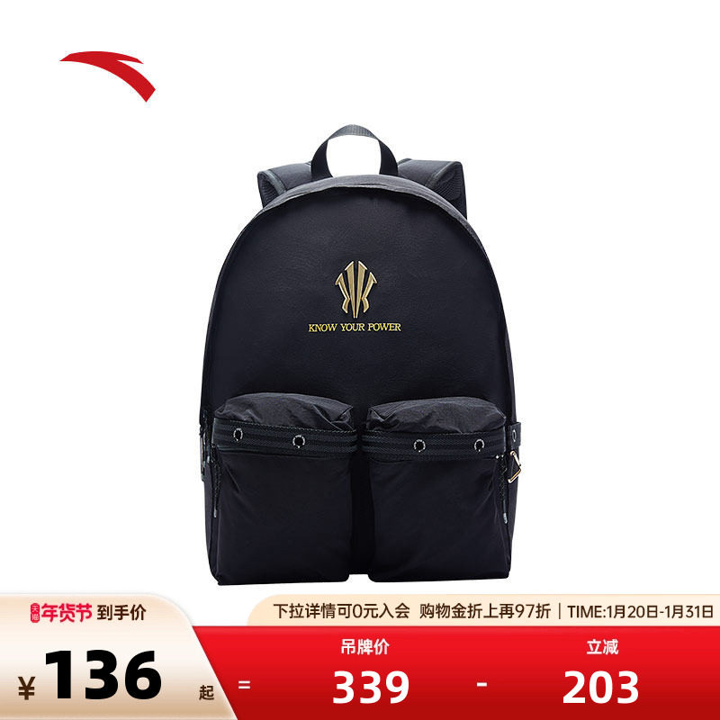 安踏凯里·欧文系列丨双肩包大容量学生书包电脑包黑色学院风背包