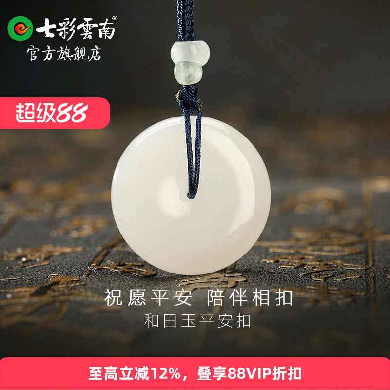 玉友和田玉羊脂玉平安扣吊坠男女款玉石项链玉器平安扣情侣款挂件
