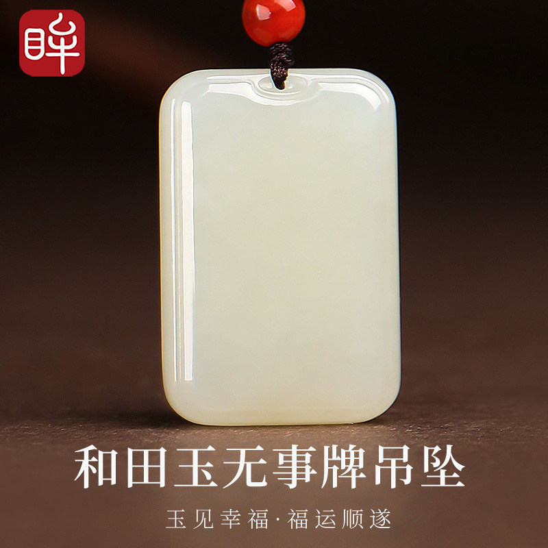 印象眸和田玉吊坠足金金珠晴水平安无事牌玉坠挂件男女款生日礼物