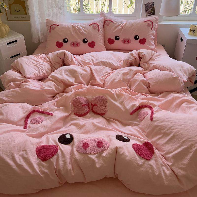 ins可爱卡通少女水洗棉毛巾绣床单被套四件套学生宿舍床上三件套