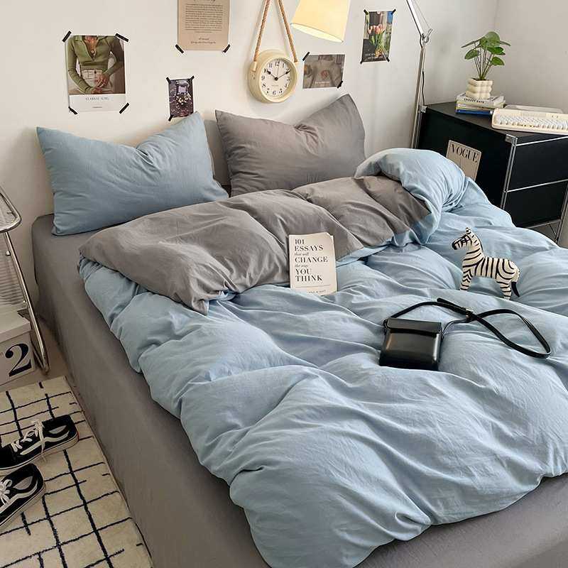 A类水洗棉双层纱四件套被罩非全棉纯棉床单人学生宿舍被套三件套