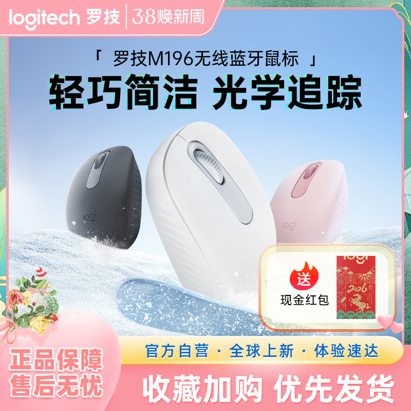 罗技M196无线蓝牙鼠标笔记本电脑台式办公家用轻音女生鼠标233