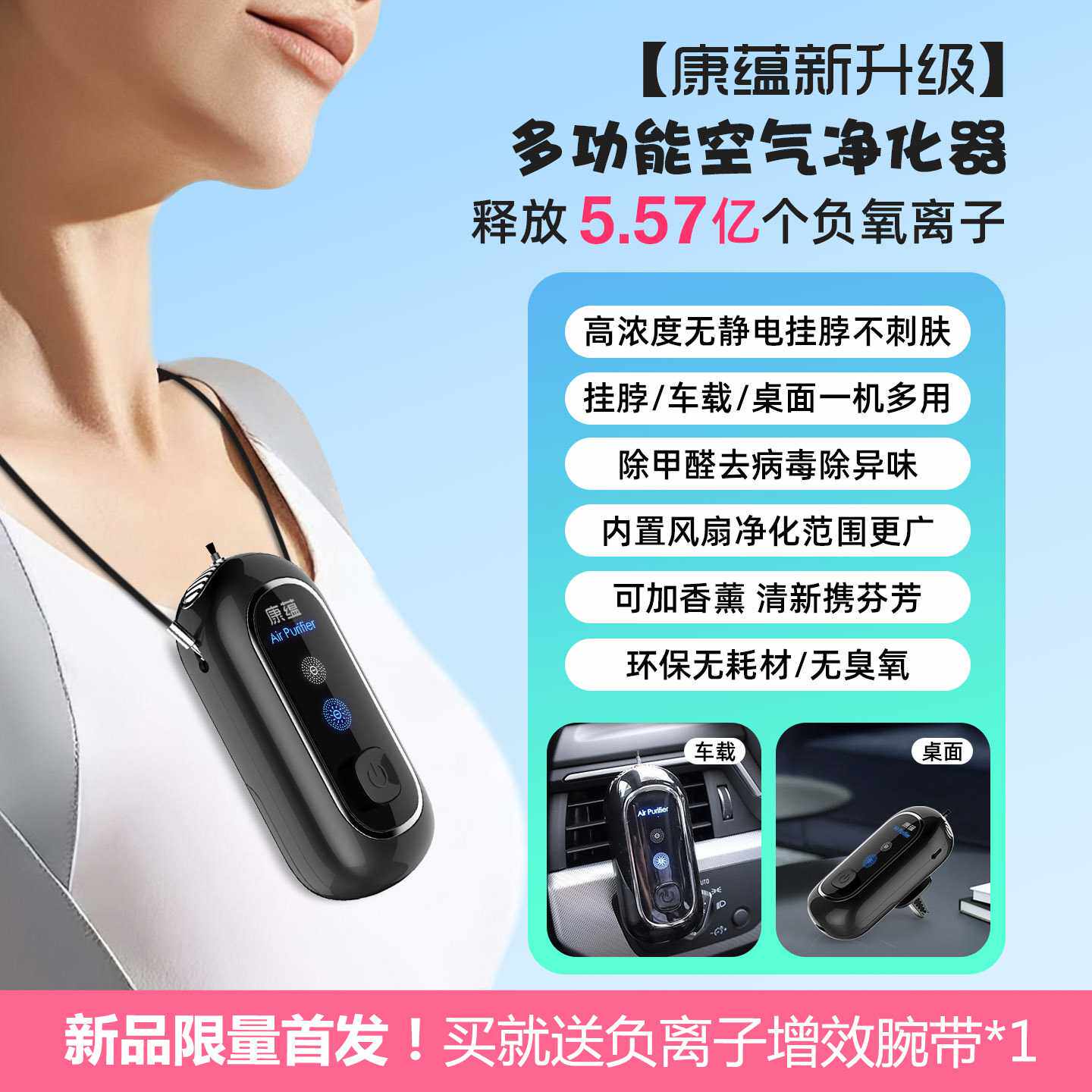 2021穿戴式上学AnionX挂脖随身轻巧小型烟尘车载负离子空气净化器