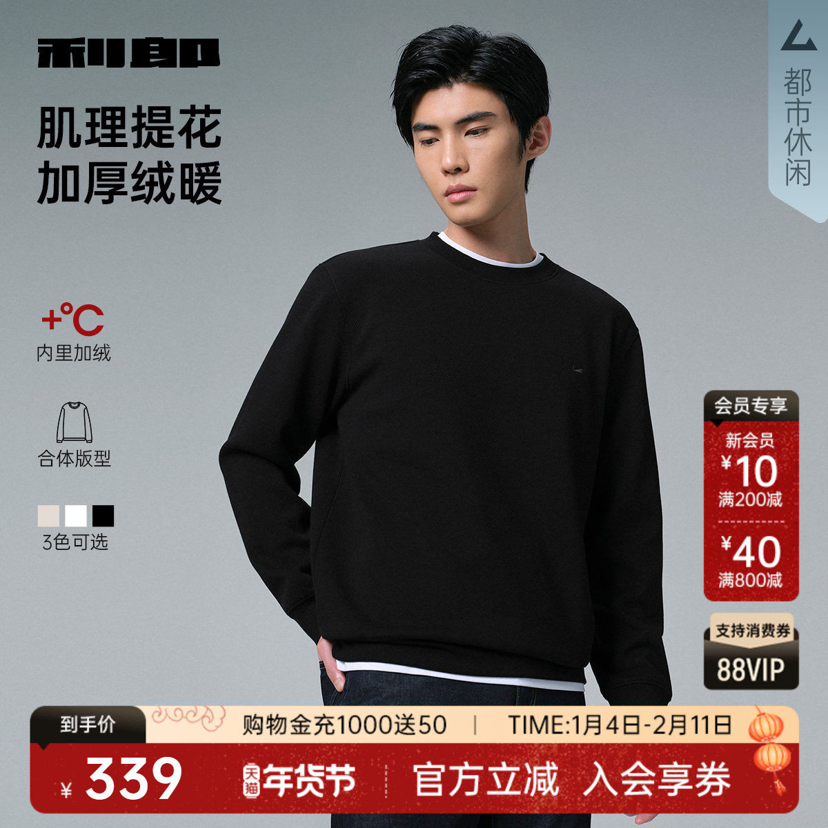 【加绒保暖】利郎官方 加厚长袖卫衣男士2025秋冬新款圆领T恤男装
