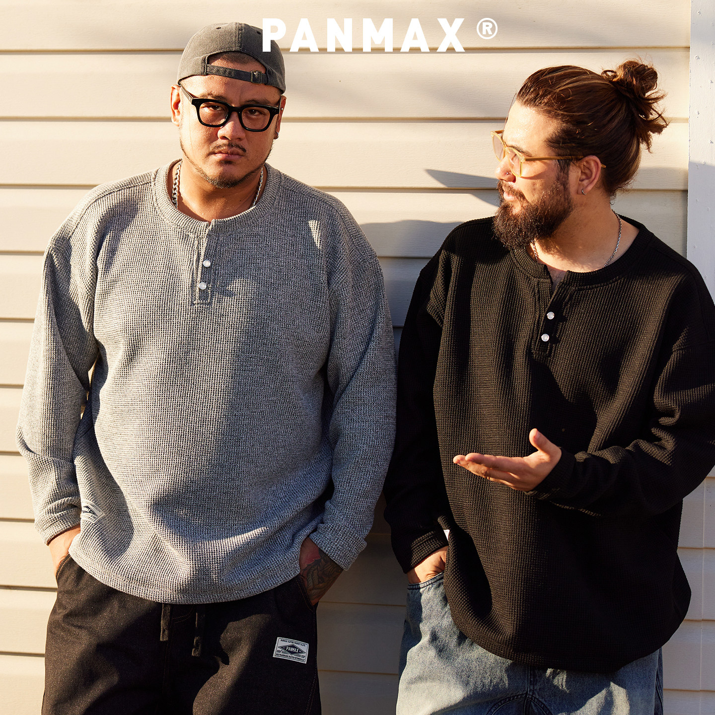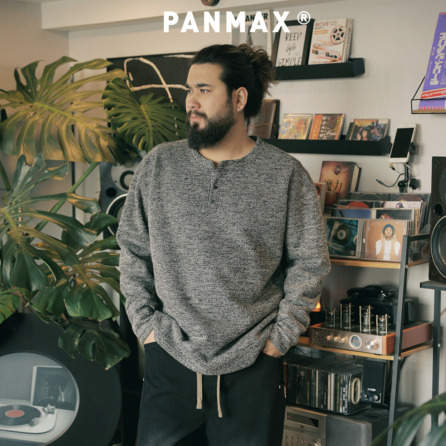 PANMAX潮牌大码男装老钱风加绒保暖重磅针织长袖T恤外套亨利领