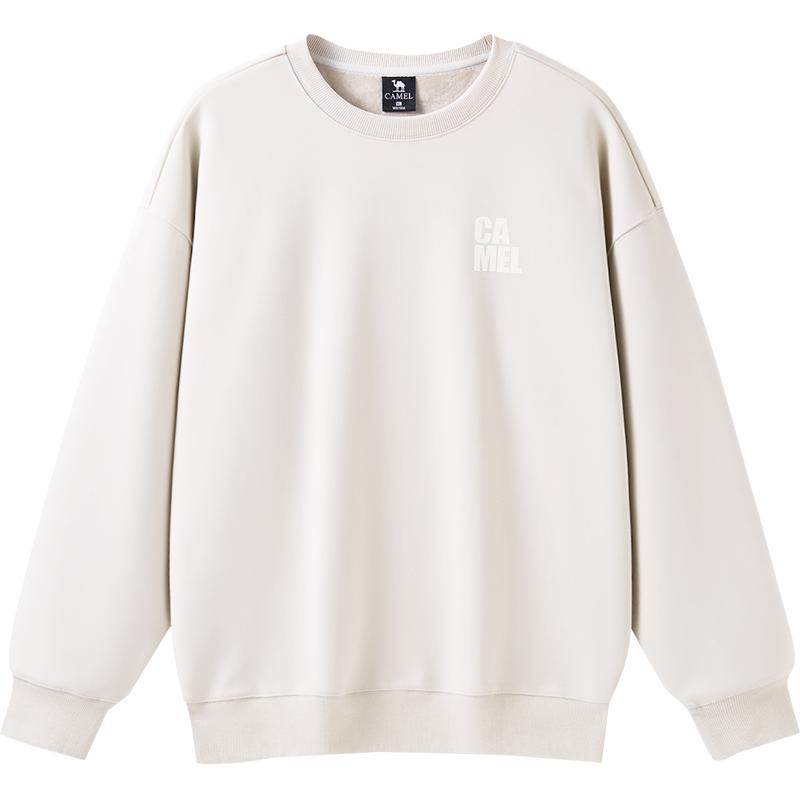 骆驼男装保暖秋冬新款加绒男女同款宽松长袖T恤上衣圆领套头卫衣