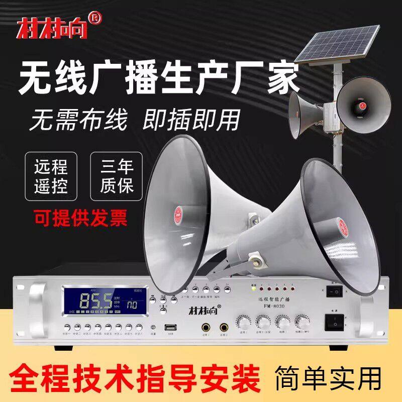 村村响无线广播系统套装农村广播喇叭扬声器号角调频发射机太阳能