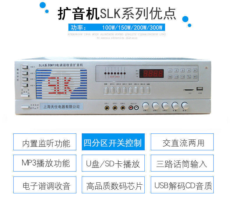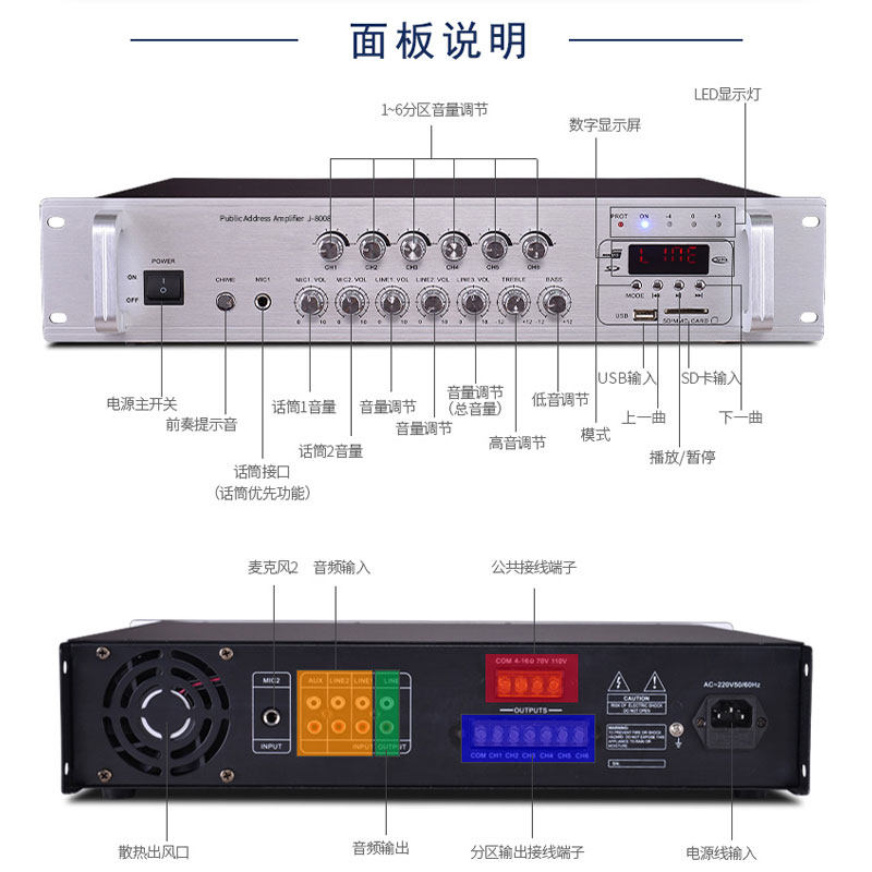 220V农村广播功放12伏车载录音宣传大功率户外厂区喊话扩音器喇叭