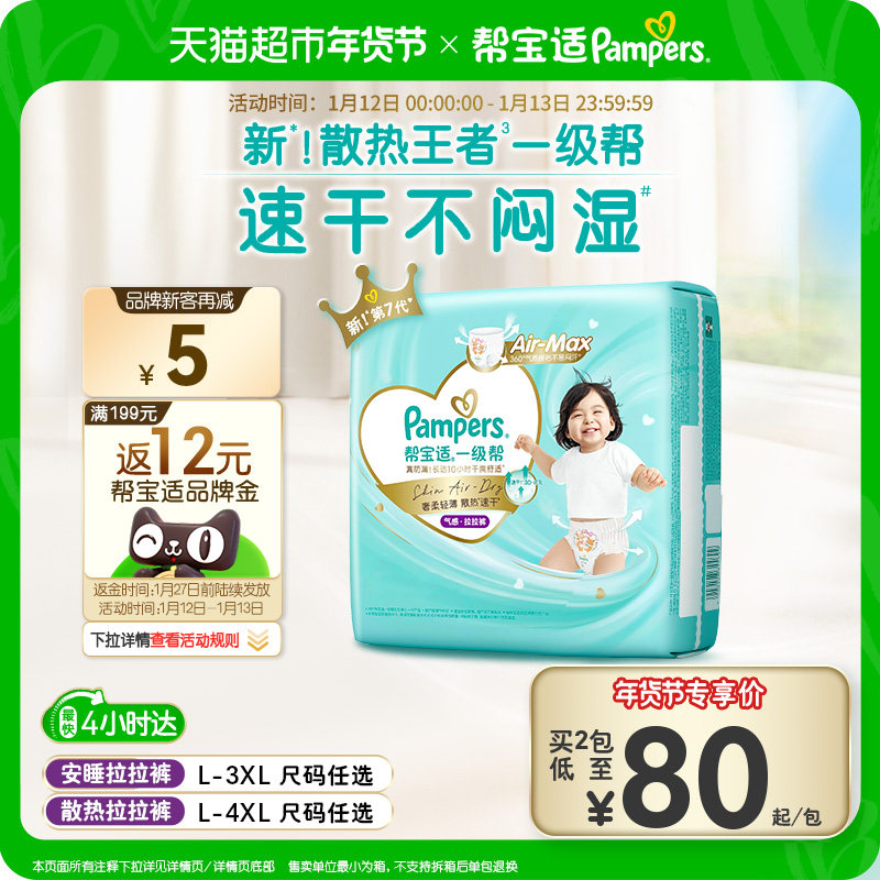 【百亿补贴】帮宝适袋鼠裤纸尿裤拉拉裤亲肤柔软透气NBS/M/L/XL