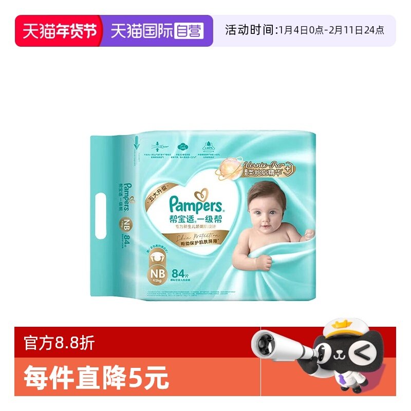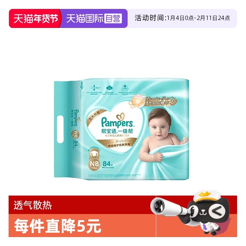 【添加类胎脂】新帮宝适一级帮新生儿婴儿纸尿裤NB-L尿不湿箱装