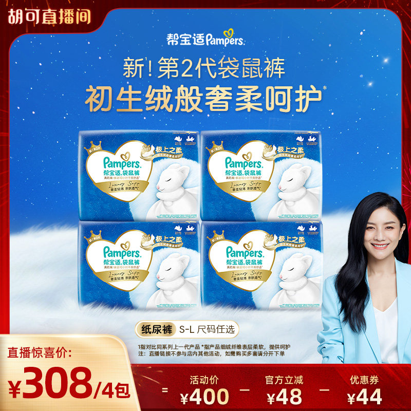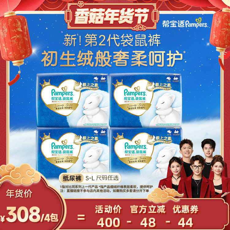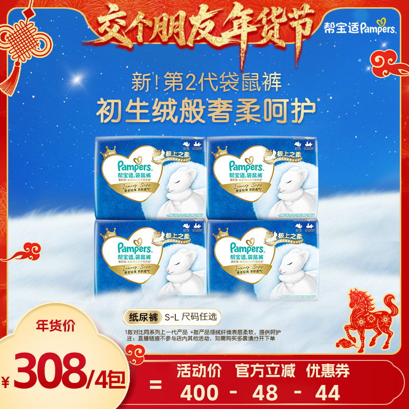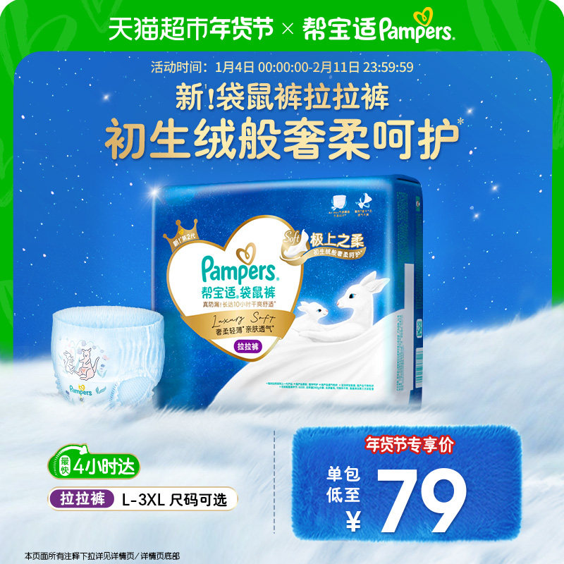 【香菇超级年货节】帮宝适袋鼠裤纸尿裤S-L超薄透气尿不湿4包