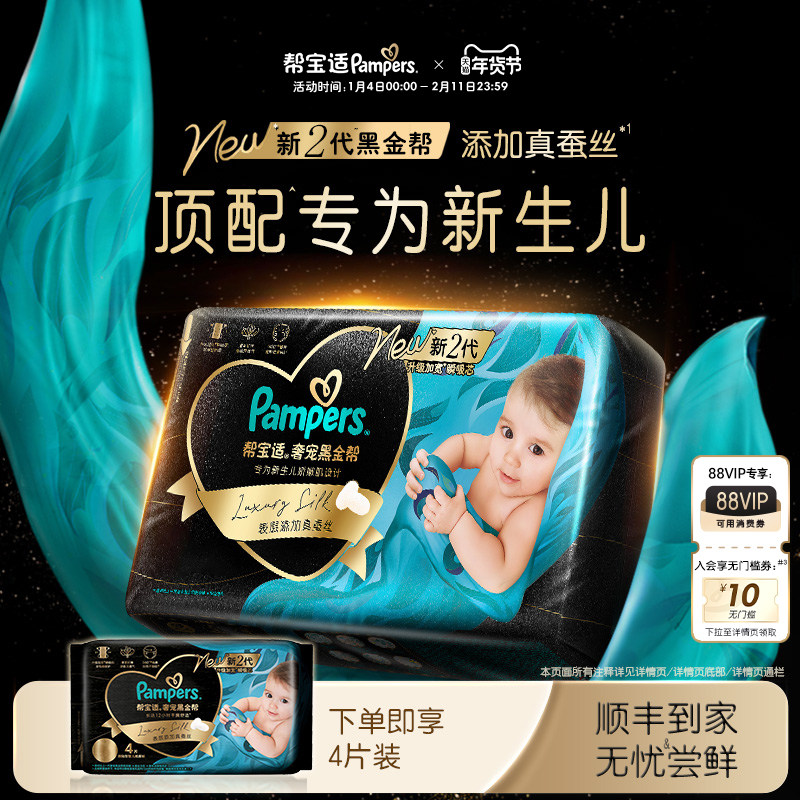 帮宝适黑金帮肌之奢宠新生婴儿纸尿裤宝宝干爽透气NB/S/M/L/XL码y