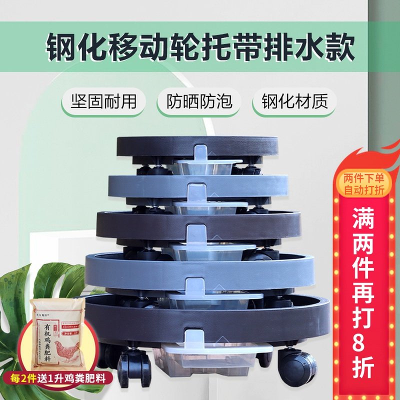 圆形托盘花盆底托盘移动加厚滚轮带接水盆花托万向轮家用塑料底座