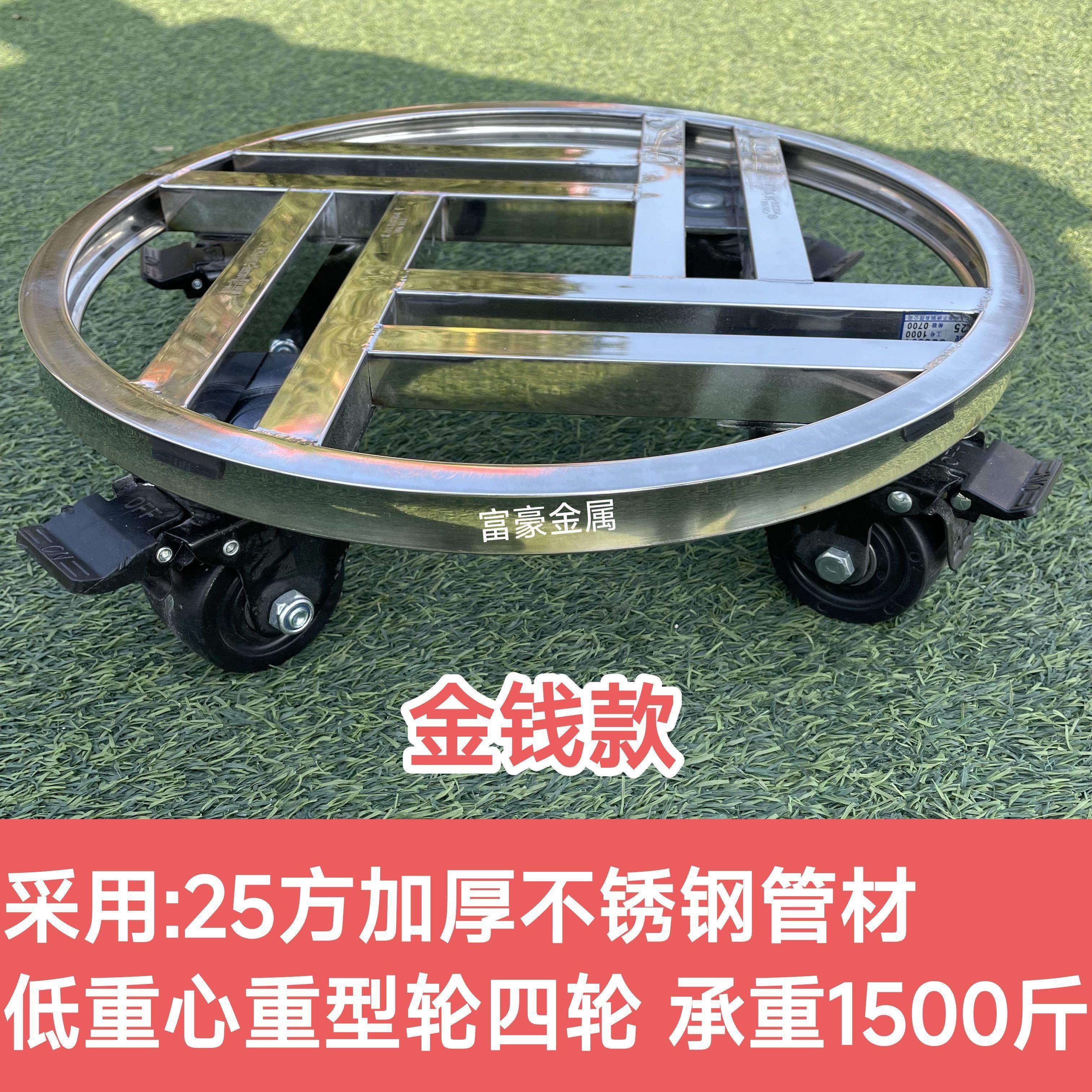 不锈钢圆形承重型可移动托盘架鱼缸底座万向轮花盆托盘盆景带滚轮
