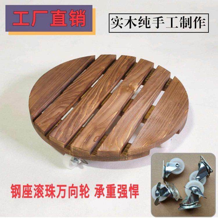 实木圆形万向轮花盆托盘 带轮花盆底座 碳化防腐木可移动花盆托架