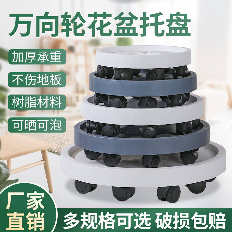 移动花盆托盘带轮底盘垫底座滚轮万向轮接水盘隐形轮盆栽塑料滑轮