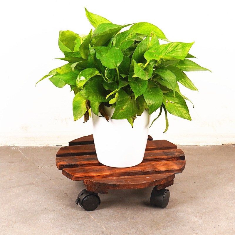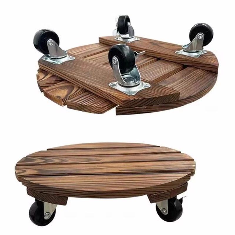 花托架实木圆形万向轮花盆托盘带轮底座碳化防腐木可移动花盆托架