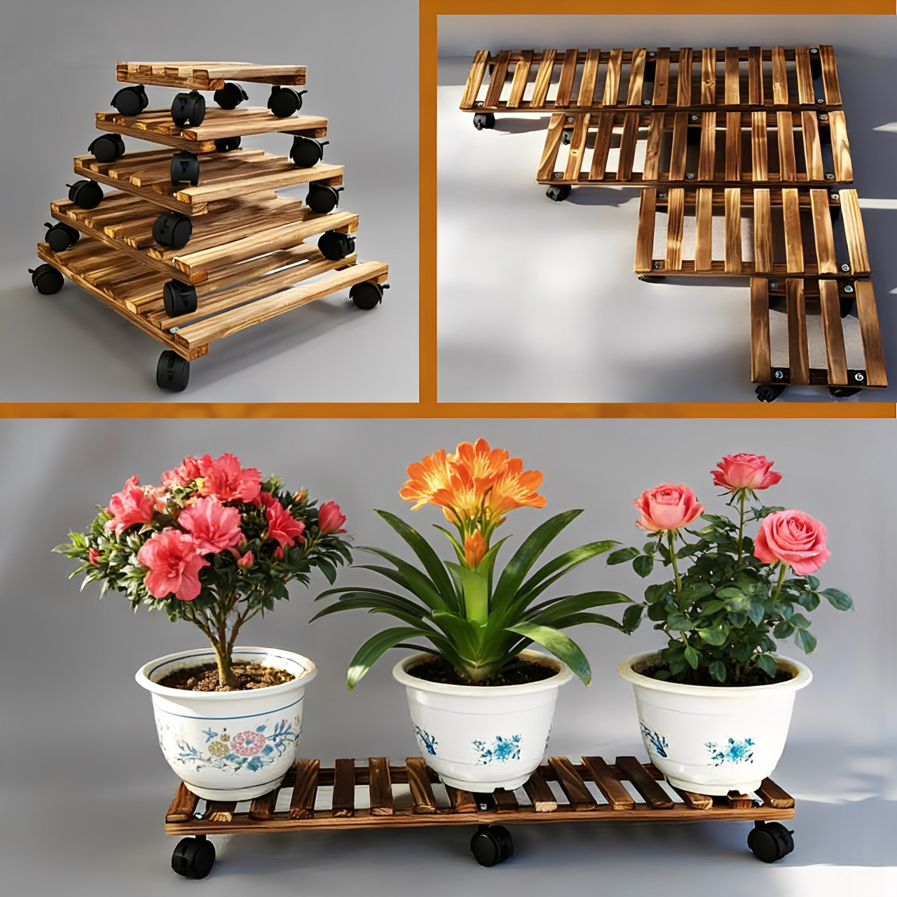 阳台可移动花架万向轮花盆托盘带轮实木花托底座加厚滚轮托架垫底