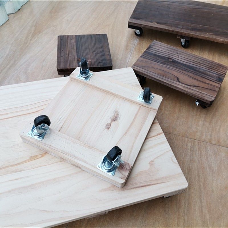加厚实木可移动万向轮花盆托盘底座阳台室外木托盆带刹车长正方形