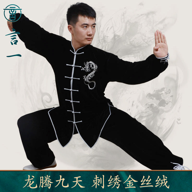 速发秋冬太极服新款金丝绒龙纹刺绣男年厚太极老中拳加武术练功服