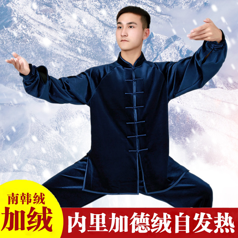 速发秋冬太极服加厚金丝绒男中老服练术晨武练功裤表演太极拳年装