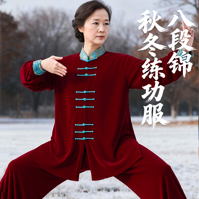 太极服女款新款秋冬季八段锦练功服女太极拳练功服加绒加厚男套装