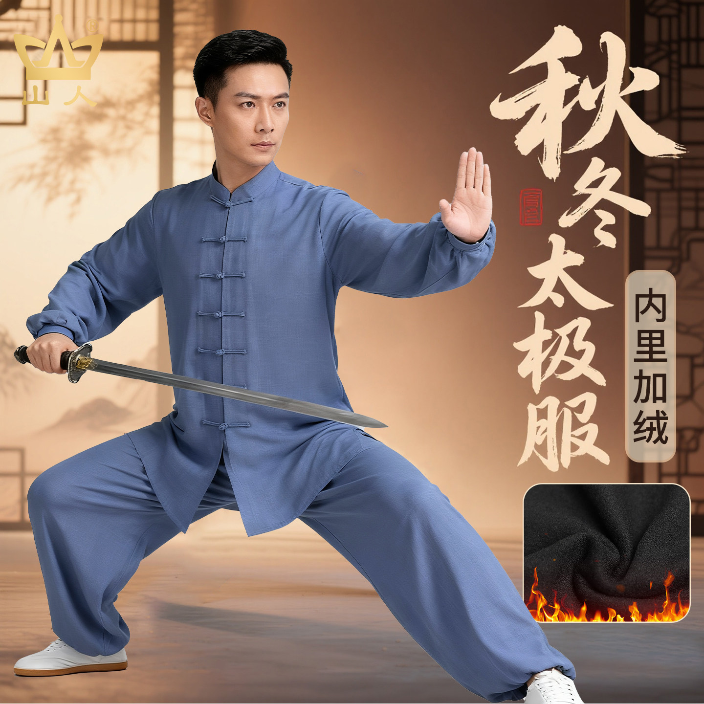 太极服男秋冬款2025新款加绒加厚太极拳练功服女表演八段锦太极服