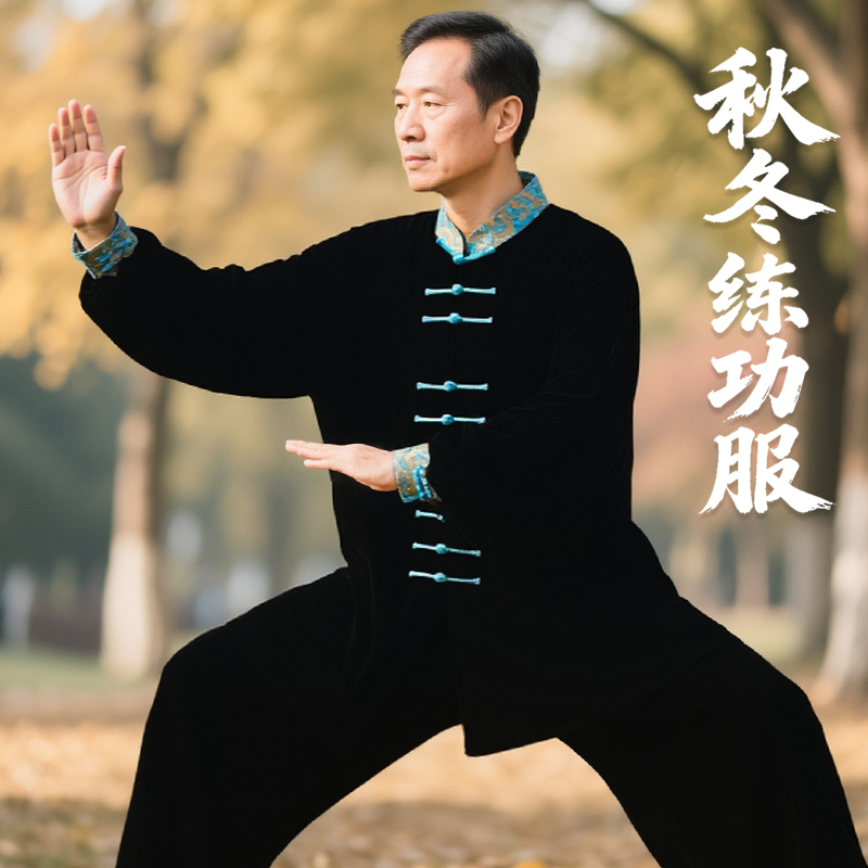 金丝绒秋冬太极服加绒加厚女2025新款太极拳练功服男八段锦太极服