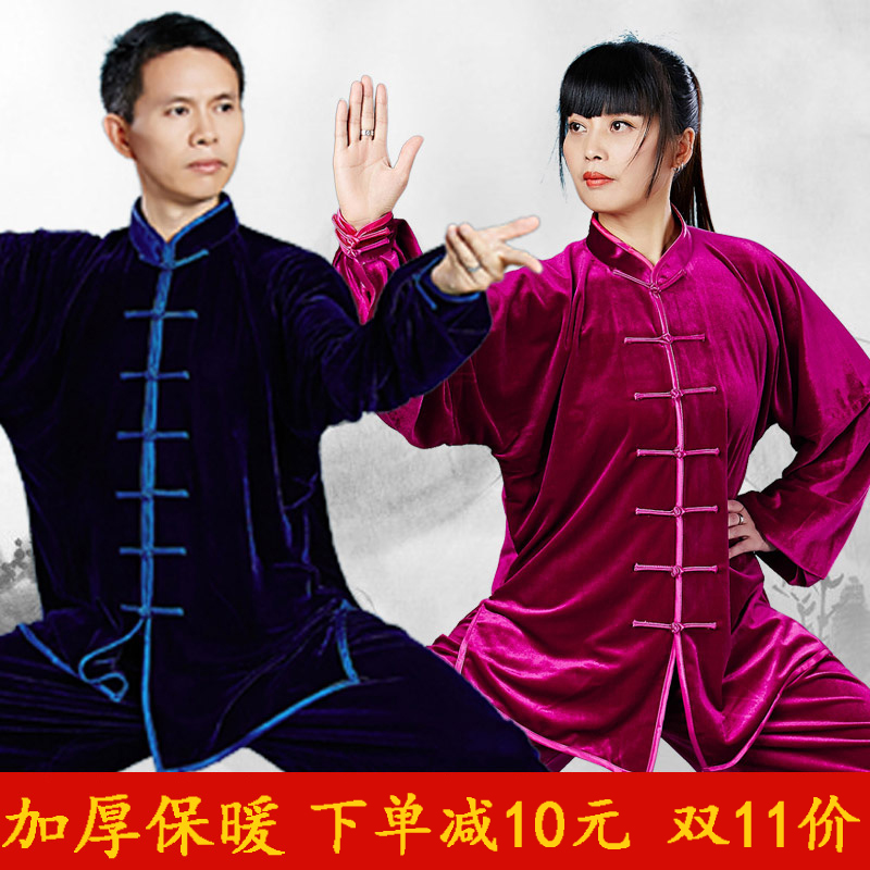 秋冬太极服女金丝绒男太极拳服中国风表演武术练功服加绒加厚保暖