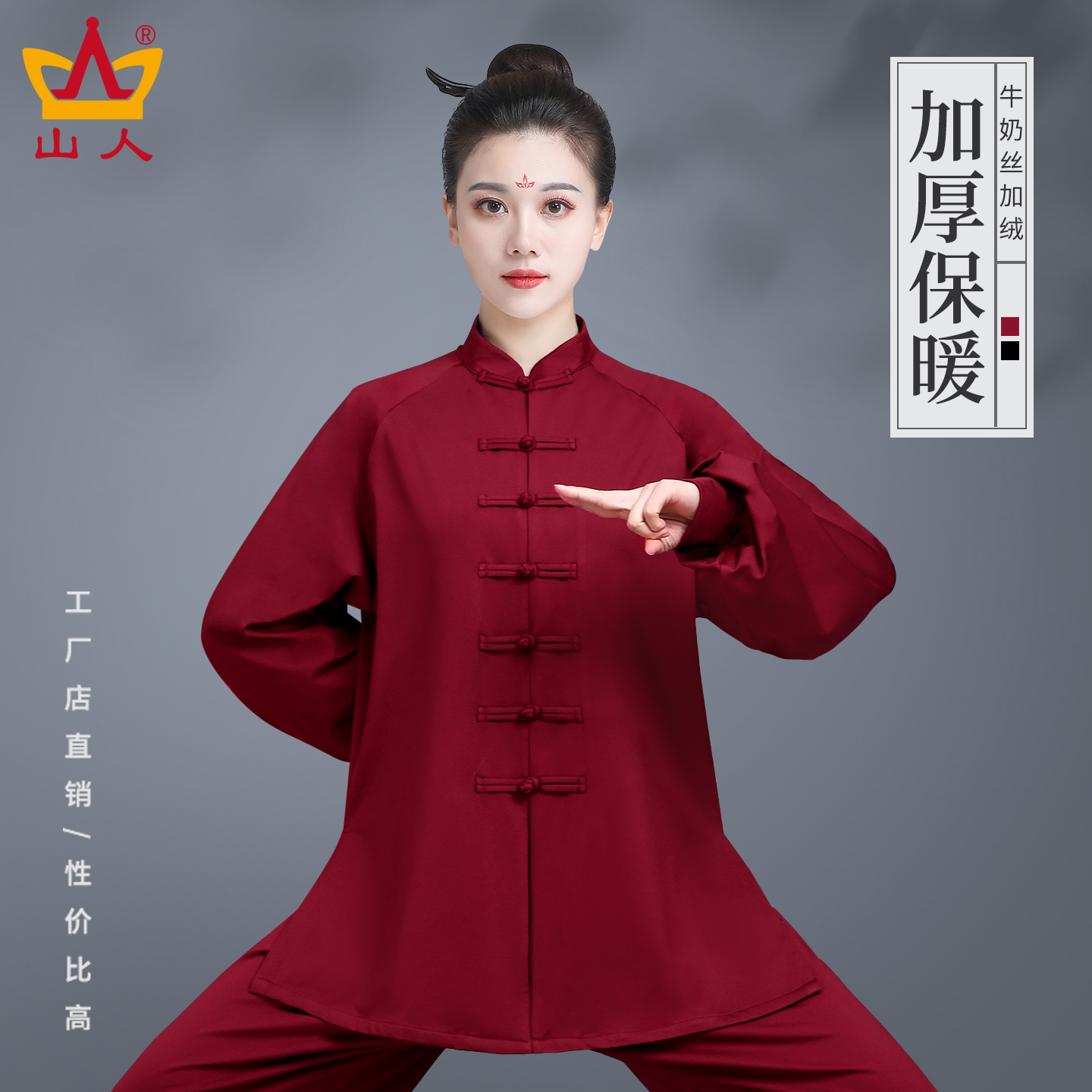山人秋冬太极服男女款加绒保暖太极拳练功服男中式武术训练服套装