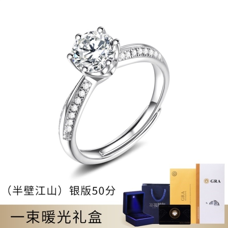 50分手捧花莫桑钻戒指女纯银一克拉钻石戒指不掉色对戒结婚仿真戒