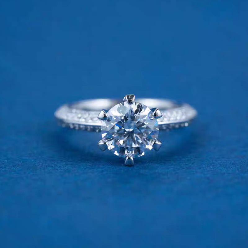PT950六爪镶嵌莫桑石一2三克拉钻石纯银镀金戒指女订结婚戒子钻戒
