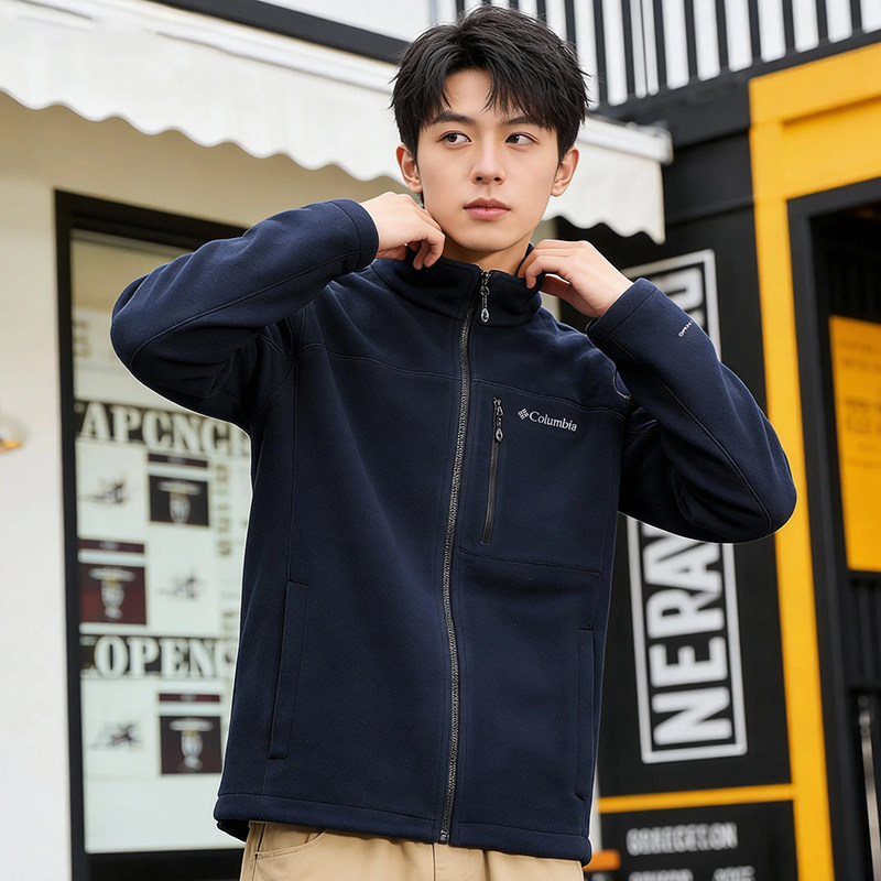 哥伦比亚抓绒衣男2025秋冬新款户外保暖立领休闲外套AE5809