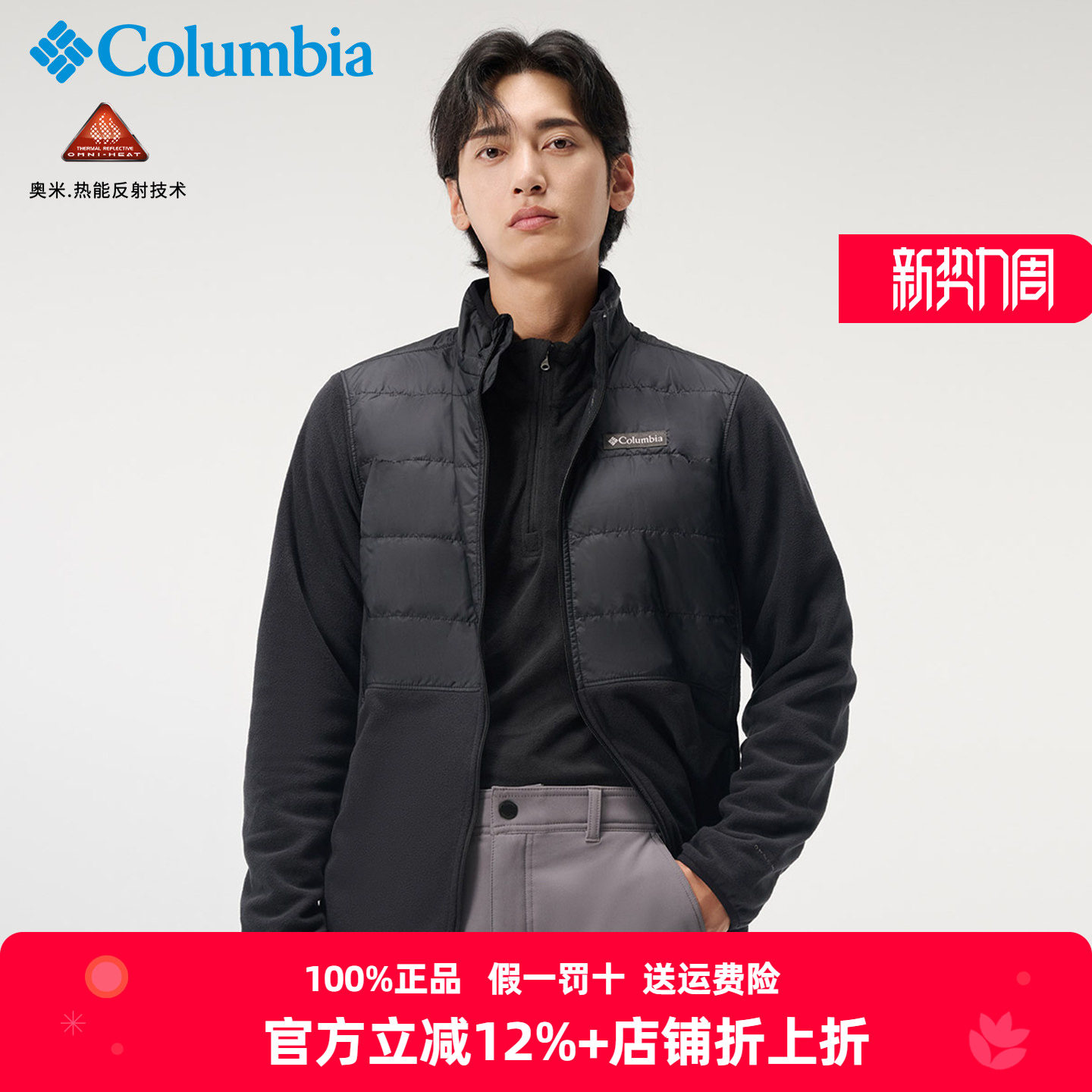 Columbia哥伦比亚抓绒衣男秋冬户外热能拼接保暖内胆外套AE4318
