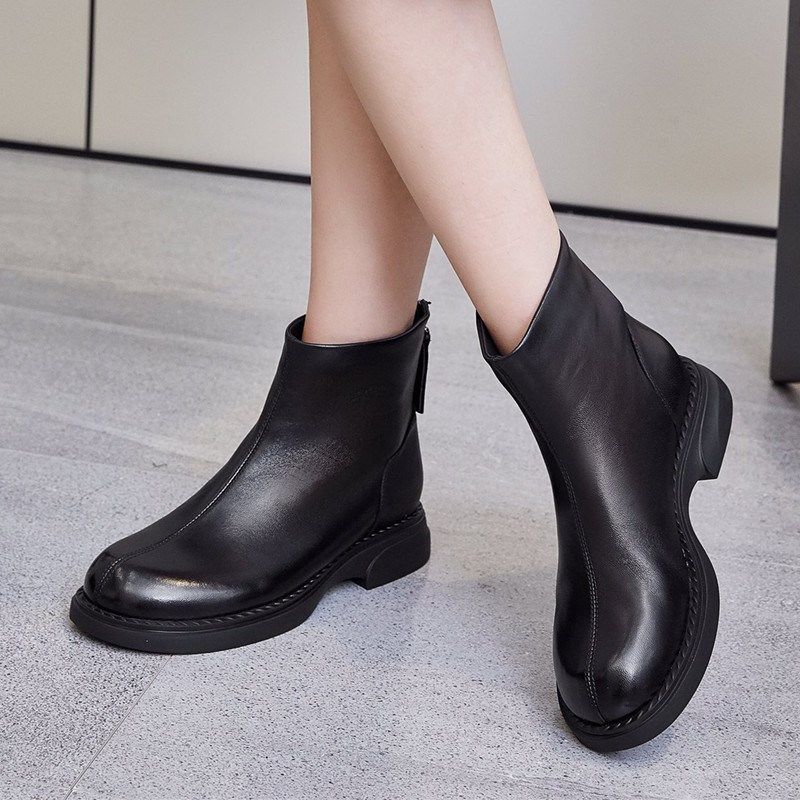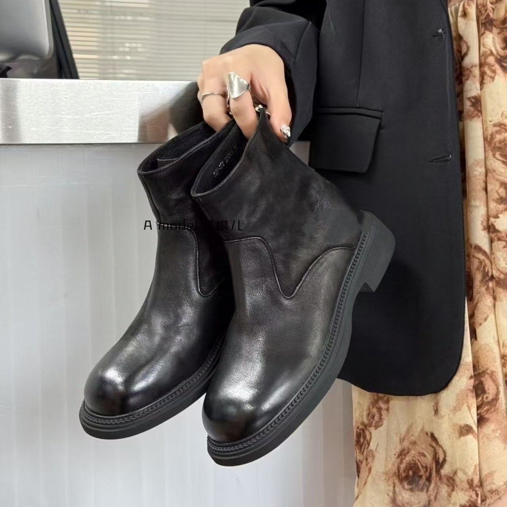 2025秋冬新款真皮软皮羊皮短靴女单靴休闲低跟平跟马丁靴裸靴百搭