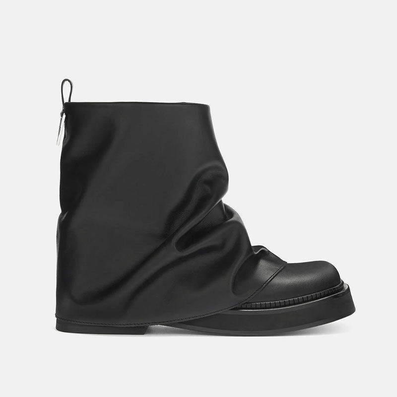 艾模儿24欧美风牛皮后拉链平底短靴裸靴平跟圆头骑士靴切尔西靴潮