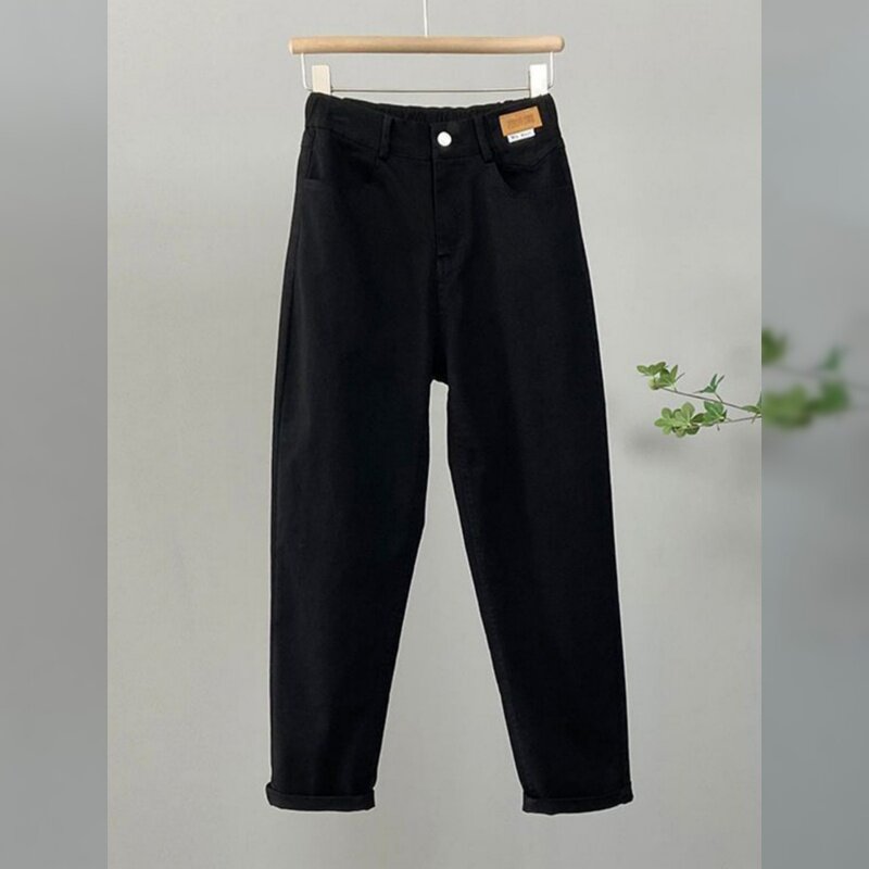 - 宽松牛仔裤女 长裤黑