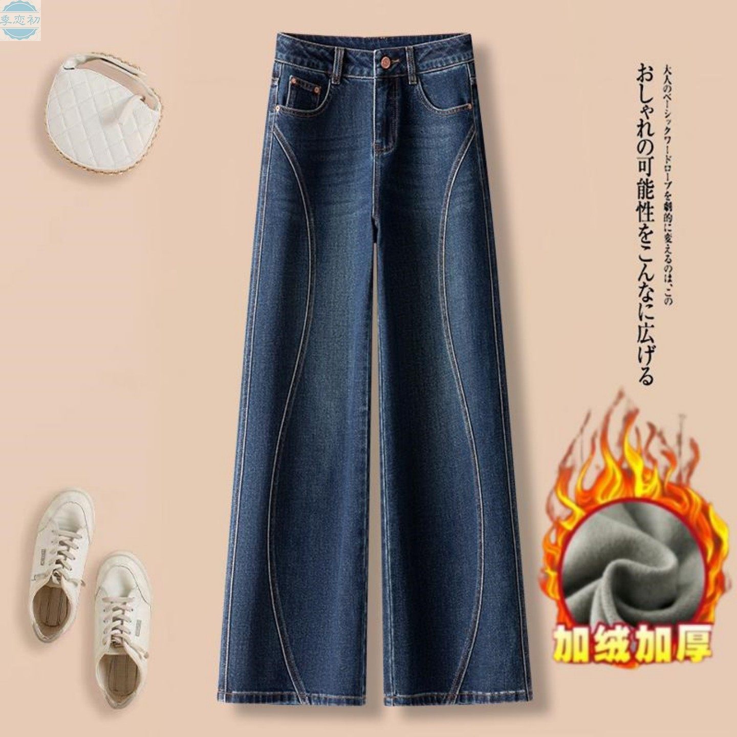 - 黑色高腰加绒牛仔裤