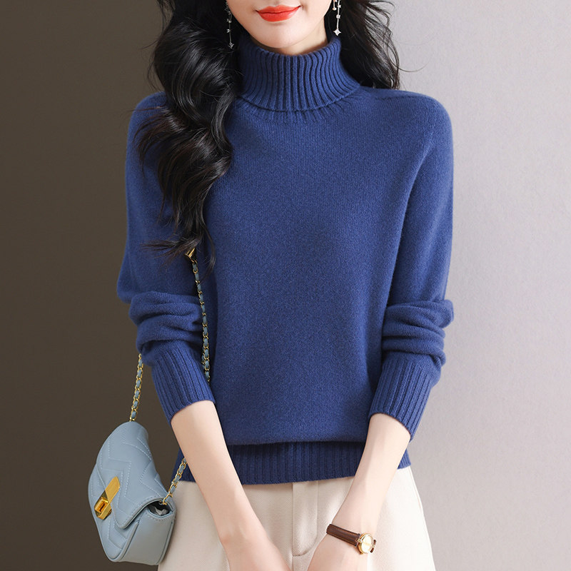 加厚毛衣套头高翻领100%纯羊毛打底针织衫女秋冬宽松大码长袖上衣