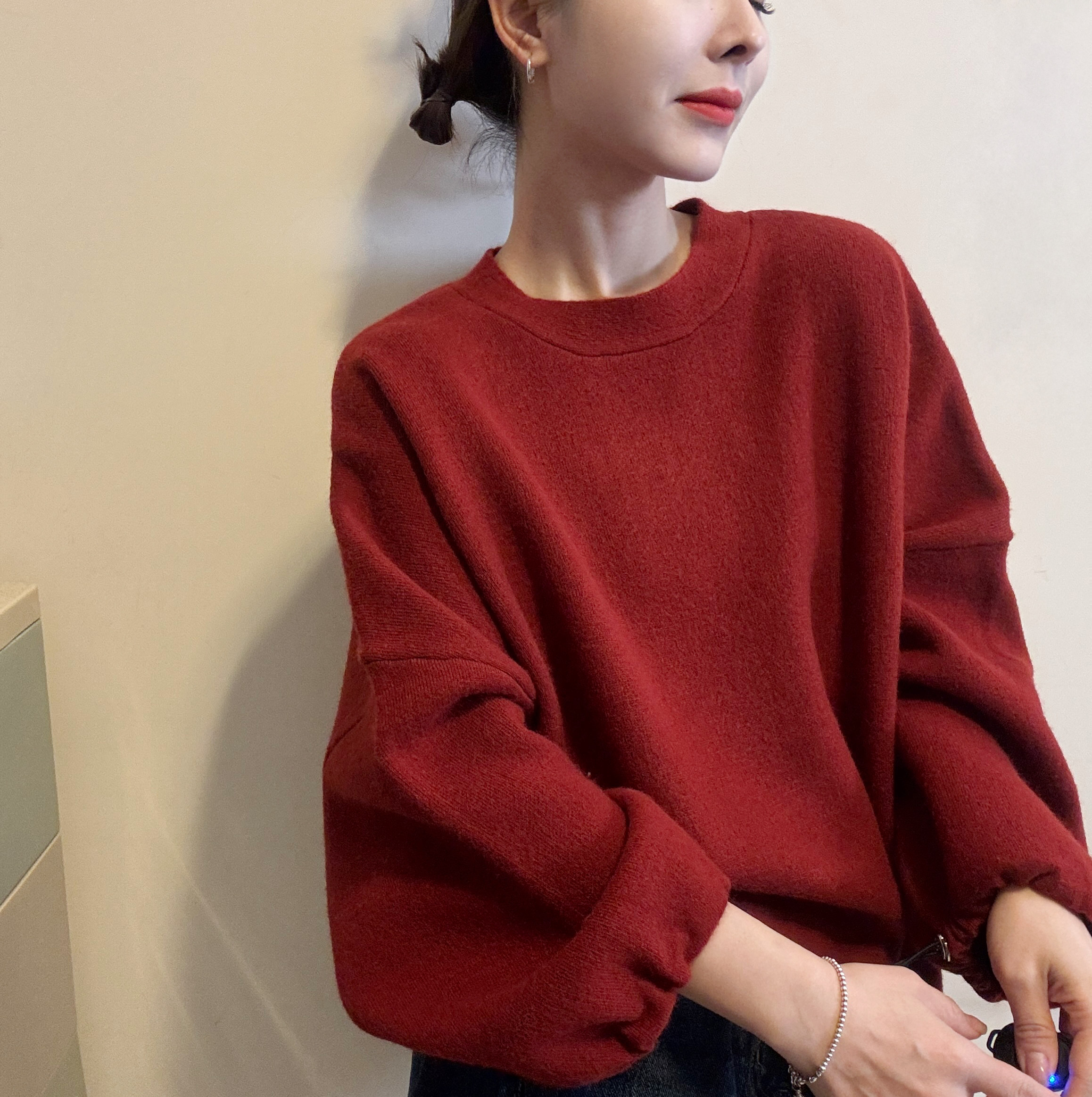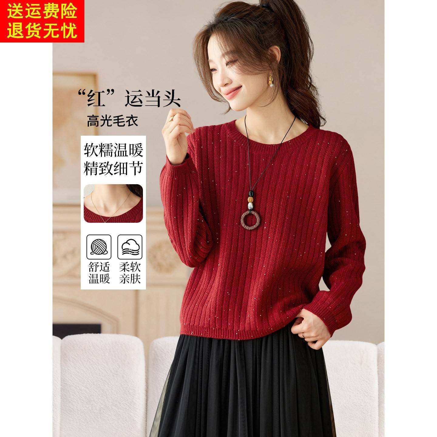 本命年红色圆领毛衣女短款秋冬季2025新款宽松套头内搭打底衫百搭