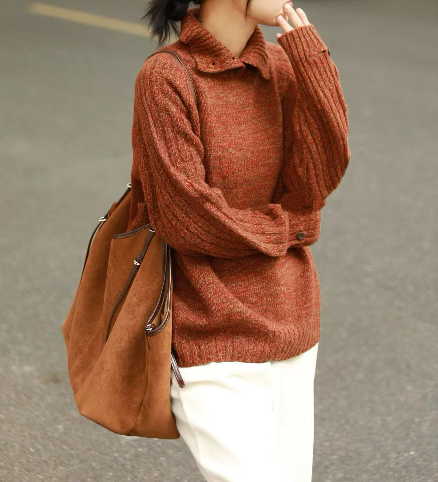 欧洲站2025秋冬新款欧货大果梨软糯羊绒毛衣女宽松套头拉毛针织衫