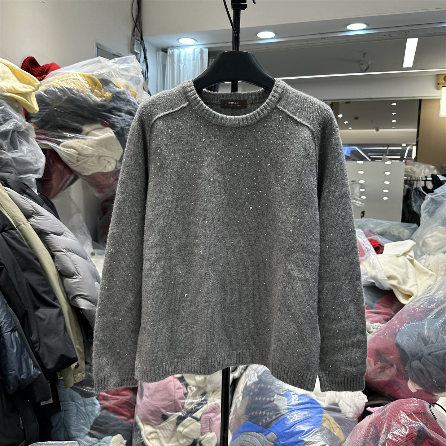 欧洲站2025冬装新款重工烫钻圆领羊绒毛衣女洋气宽松套头羊毛上衣